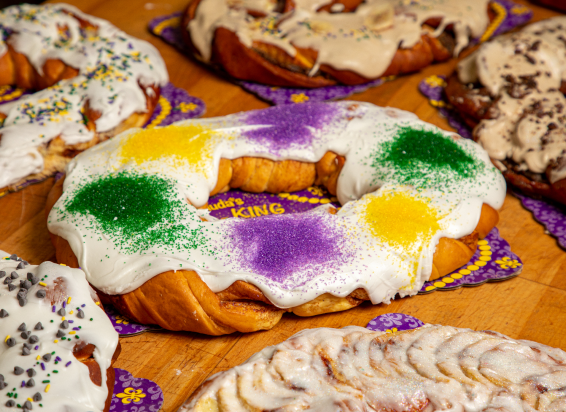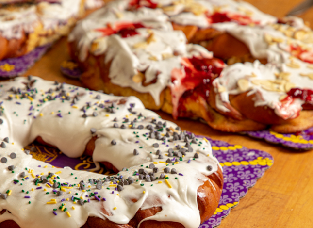 Our king cakes are baked from midnight to the early morning the same day they get picked up. You receive your cake the very next day so it is as fresh as possible. We all find the cake actually tastes better the next day. A fresh cake doesn’t have time for the flavors to all come together… kind of like a good pot of gumbo!